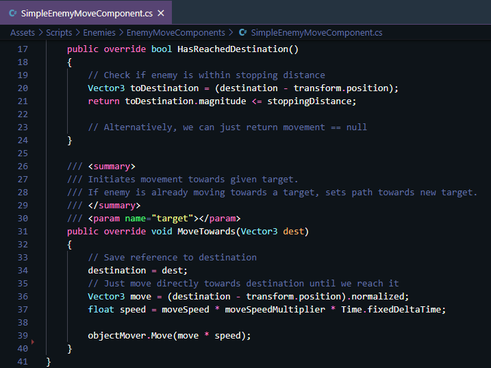 So I went and created a new SimpleEnemyMoveComponent that just moves in a straight line towards its destination.